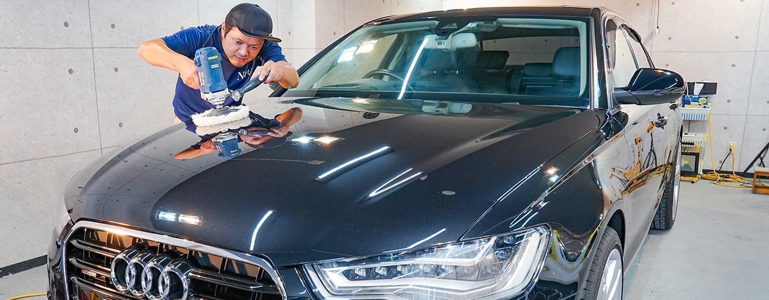 性能の低いコーティングや、コーティングを施工していない場合は図のように元に戻せなくなる、または戻せてもクリアーが減り耐久性が落ちます。